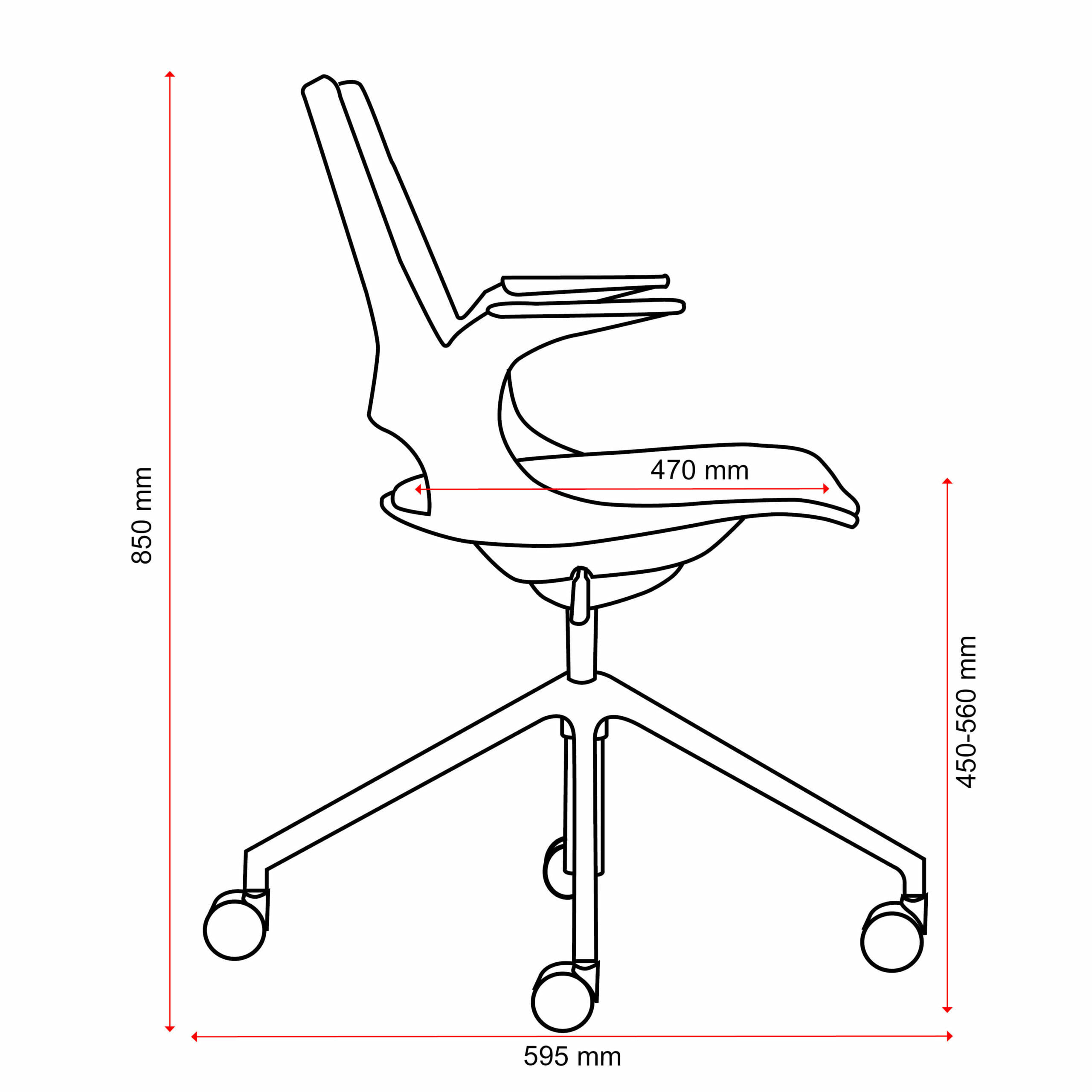 | Minimum Height (mm) | with castors: 450-560h, without castors: 385-495 |